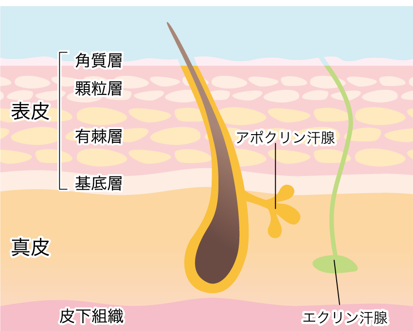 皮下組織」は、皮膚の3層構造のうちもっとも内側にある組織で、表皮と真皮を支えています。